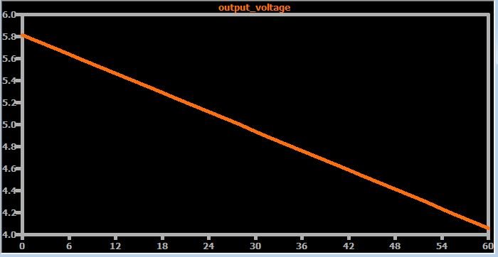As you can see, we have a nice linear relationship between voltage and temperature. However, the amplitude of the voltage response is quite small. Over a range of 60°C, the voltage changes only by ~70 mV. Compare this to the plot of output voltage vs. temperature.
