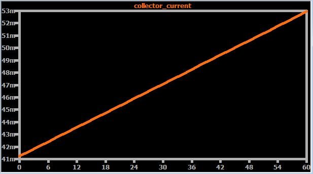 The output voltage varies by about 1.7 V over the same range, a major improvement. I’m willing to call this a success, but I highly doubt that this circuit is anywhere near optimized. Also, the large amplification comes at a rather heavy price, namely, high current consumption. The following plot shows Q1’s collector current vs. temperature: