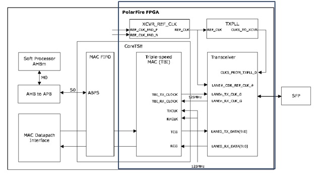 Figure 2. 1 GbE Implementation over Transceiver using the Microsemi PolarFire FPGA.