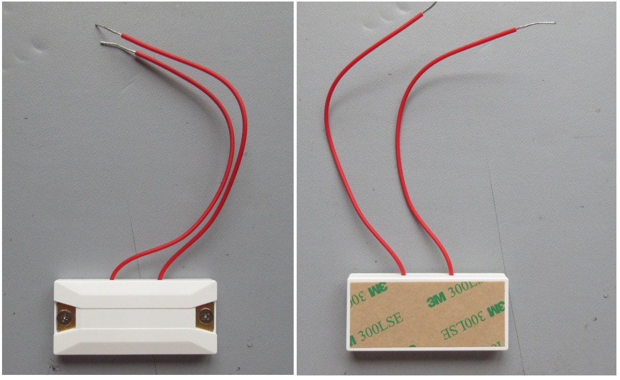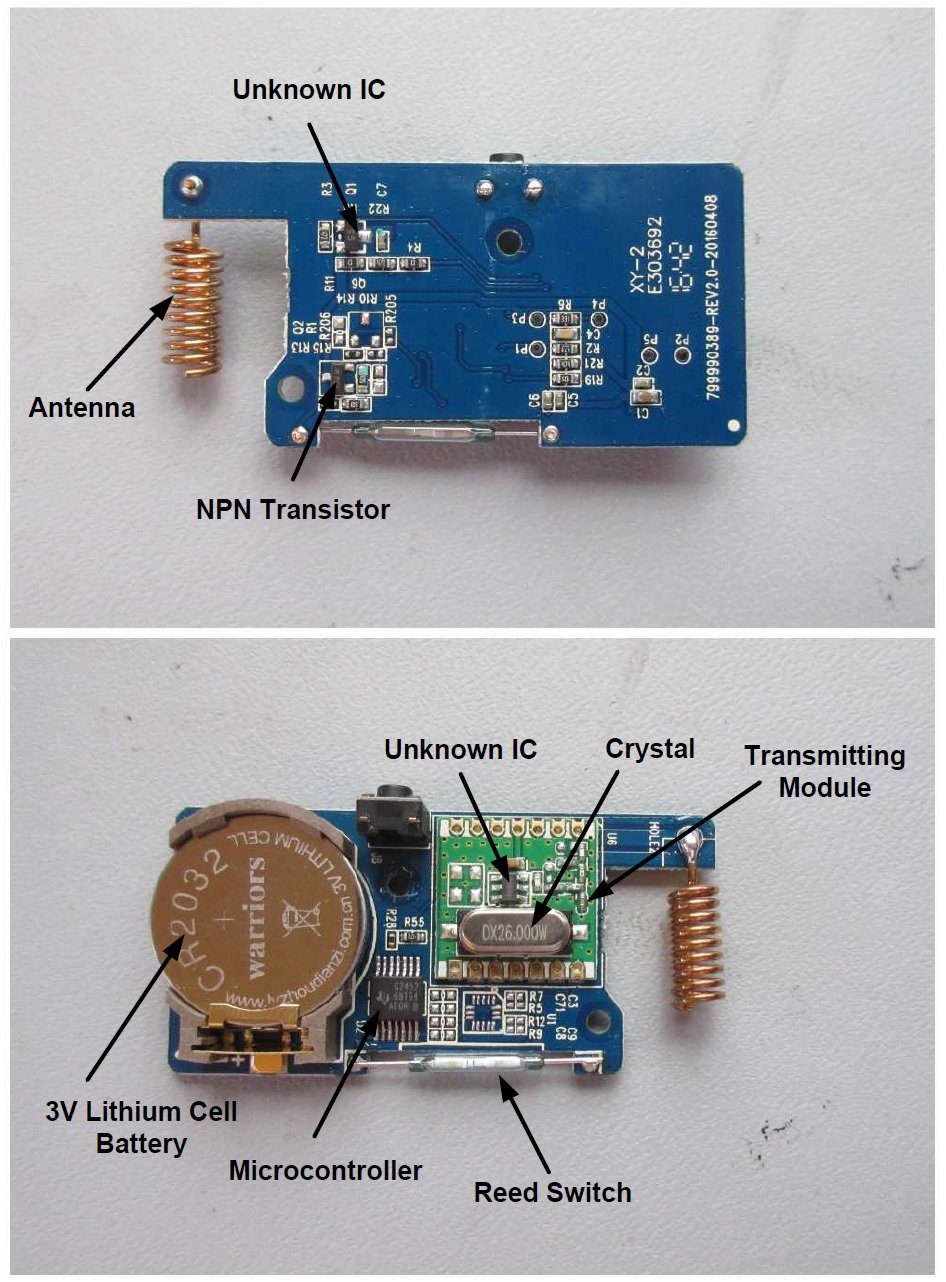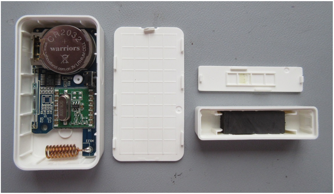 The figure below shows two parts of a single sensor; one part contains all the electronics (including the magnetic sensing circuitry and the wireless communications circuitry) while the other part is much less complicated as it simply contains a magnet.