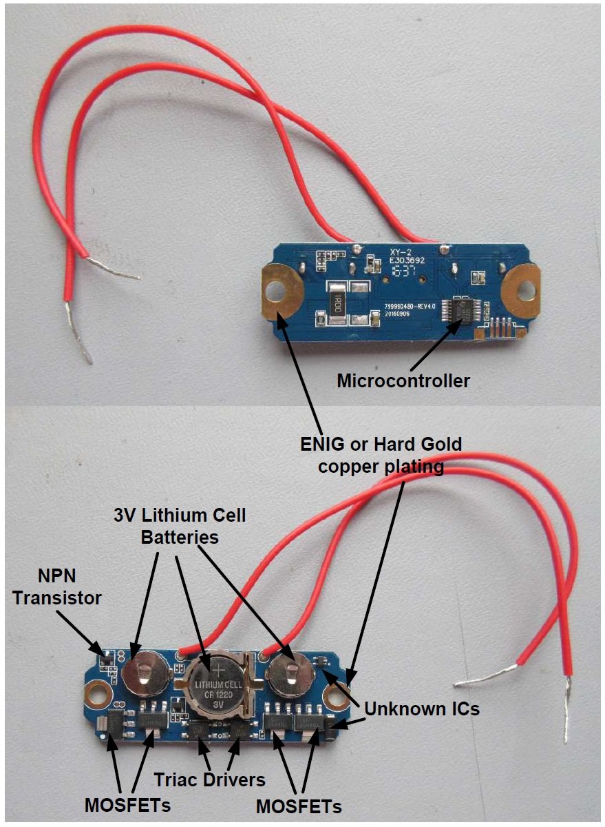 The following two figures show all the components that reside inside this module, and while not all of the electrical components have been identified, most of the major ones have been singled out.
