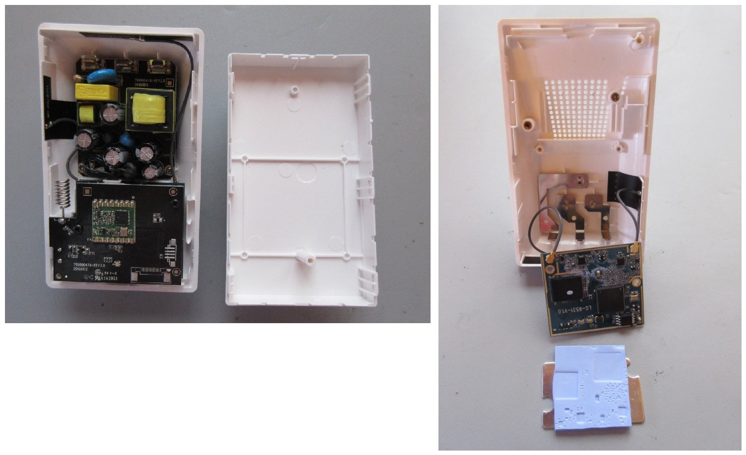 The Smart Range Extender disassembled; notice the blue TIM and an attached metal heat plate.
