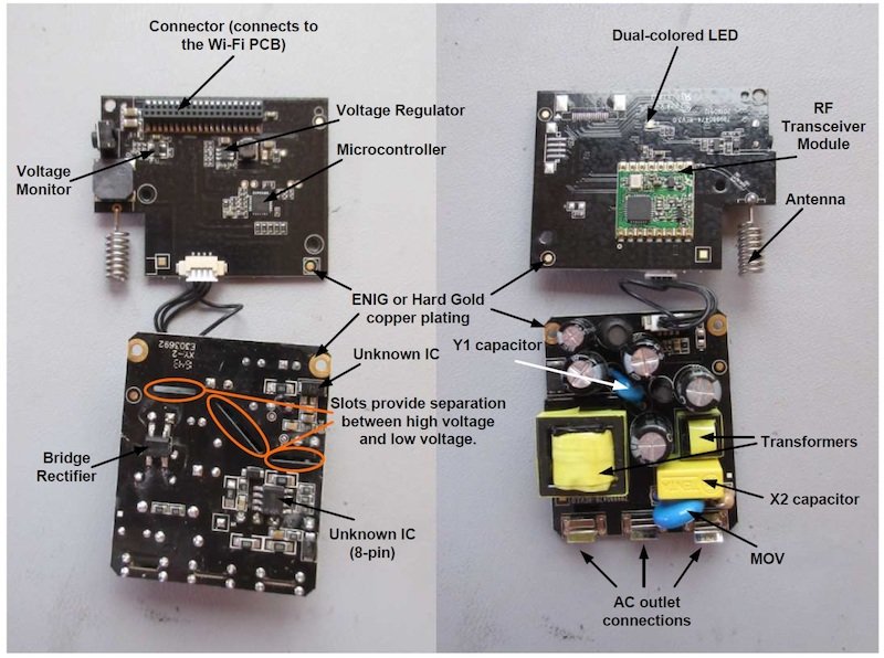 Inside this Smart Range Extender are three PCBs that are used for converting the AC voltage to DC and for the wireless communication.