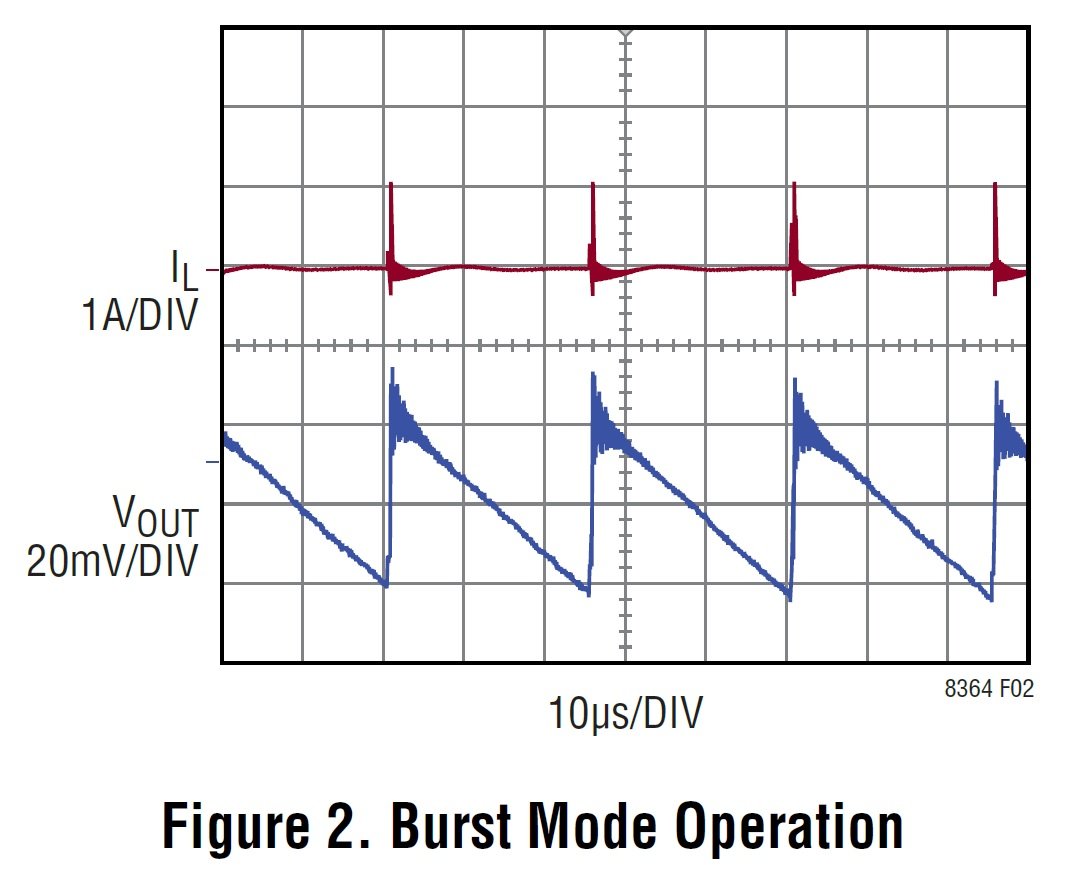 Figure 3. The current supplied to the output capacitor during burst mode. Plot taken from the datasheet (PDF).
