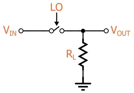 The first question that I know you are asking: “How can this possibly be mixing?” Well, first remember that mixing is multiplication. If you think of the LO as a square wave that transitions between 0 V and 1 V, the switch is effectively multiplying the input signal by the LO: When the switch is closed, the output is equal to the input multiplied by one. When the switch is open, the output is equal to the input multiplied by zero.