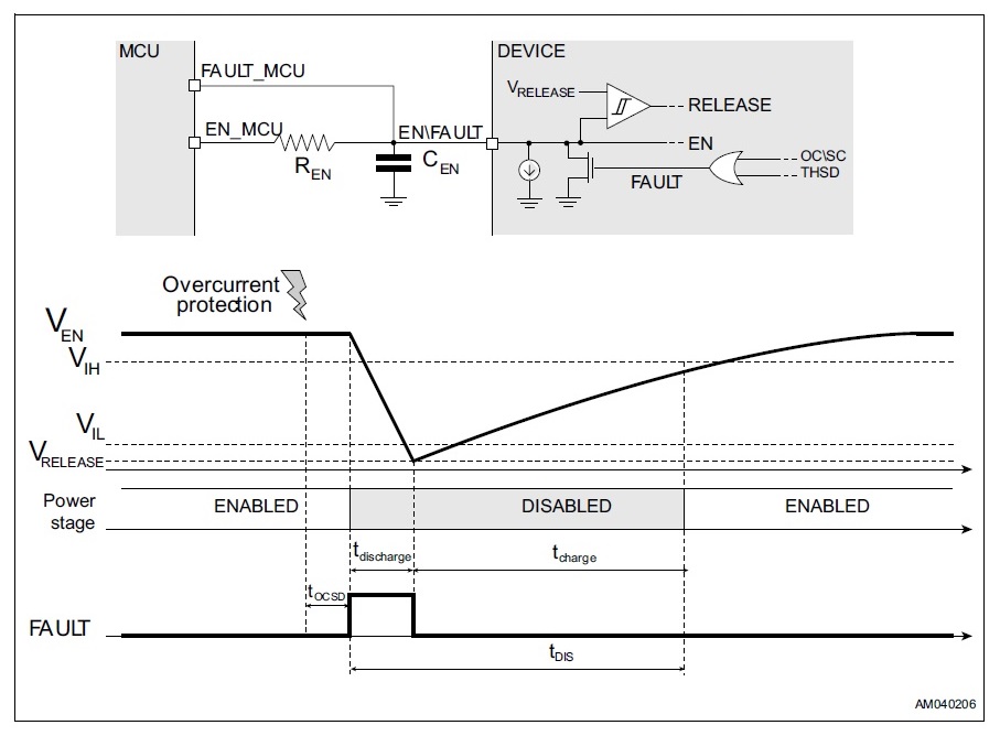 Figure 4. Overcurrent and short-circuit protection management. Diagram taken from the datasheet (PDF).