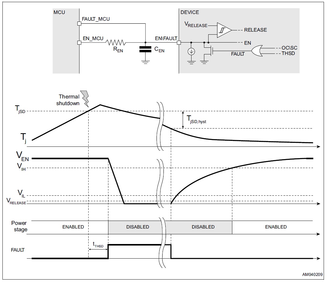 Figure 6. Thermal shutdown protection management. Diagram taken from the datasheet (PDF).