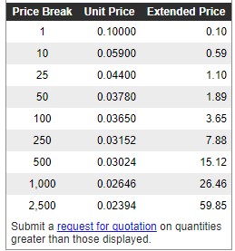 Figure 4. Shunt jumper price breakdown, from Digi-Key.