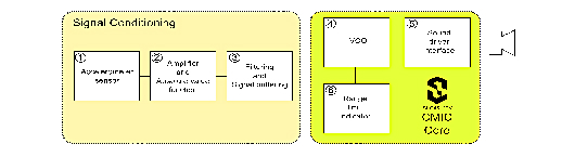 We start with Figure 4, which shows a complete block diagram of the system. The design has two main sections: Signal Conditioning and CMIC Core. The tan box contains the blocks that generate and condition the signal, and the green box contains the GreenPAK integrated circuit and its support parts as RC timing network, audio driver, and a visual indicator. The GreenPAK SLG46120V IC was chosen to perform multiple functions, including an oscillator, sound driver, and LED array.