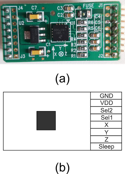 Figure 5(a) shows the module board and Figure 5(b) shows the pinout of the Accelerometer sensor.