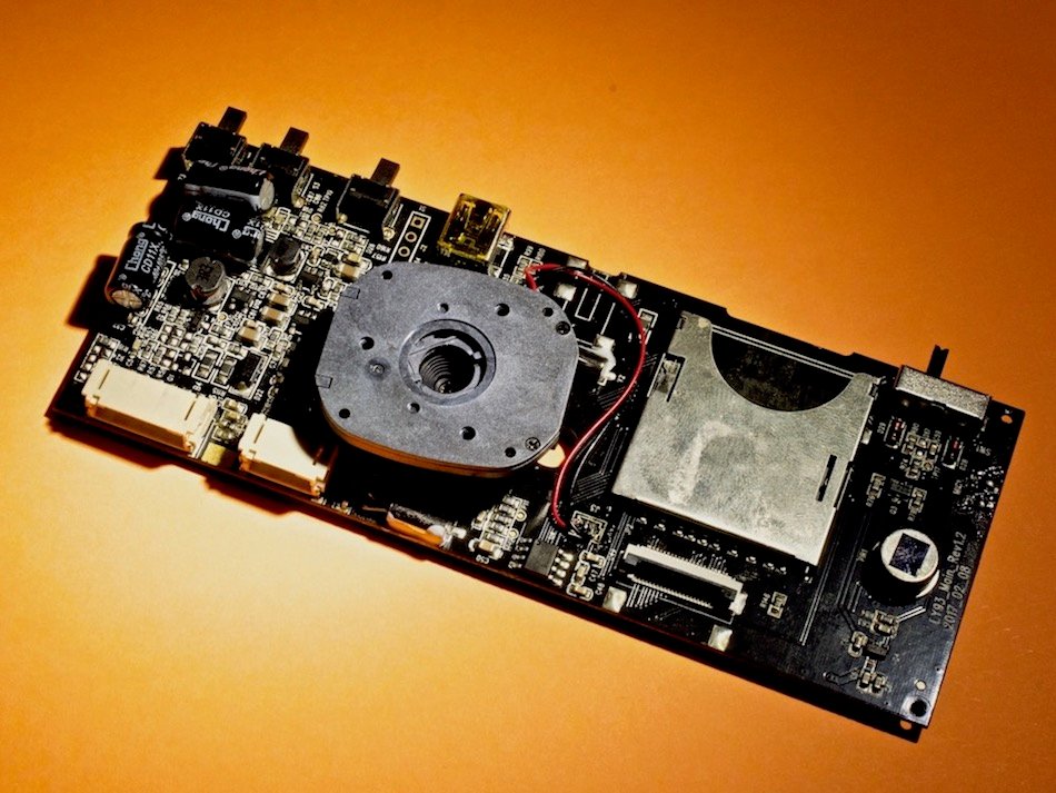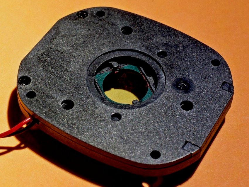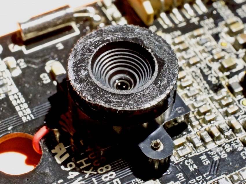 If motion is detected, the camera will turn on. The camera module and lens assembly are mounted directly to the PCB, held in place with two screws. This camera module is an advertised as a 5 megapixel CMOS sensor.