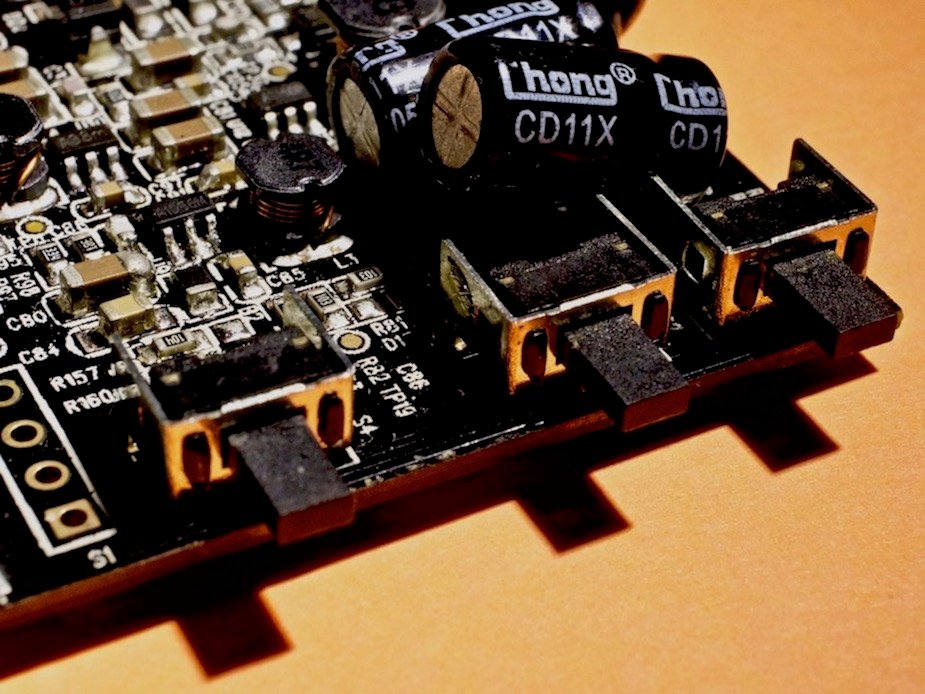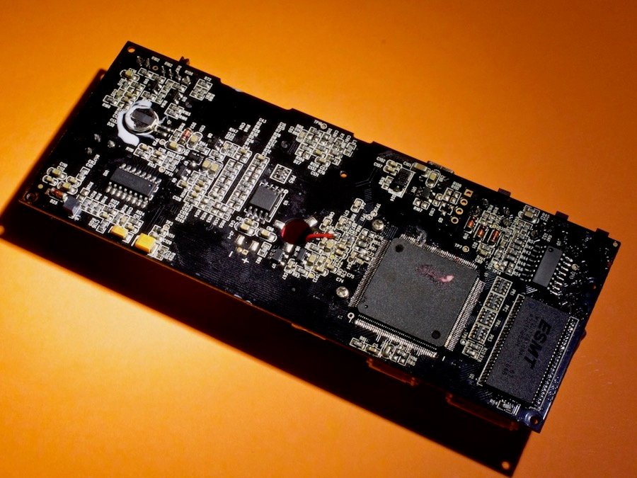 The top of the board is populated with both surface-mount and through-hole components. The rear of the circuit board has only surface-mount components.