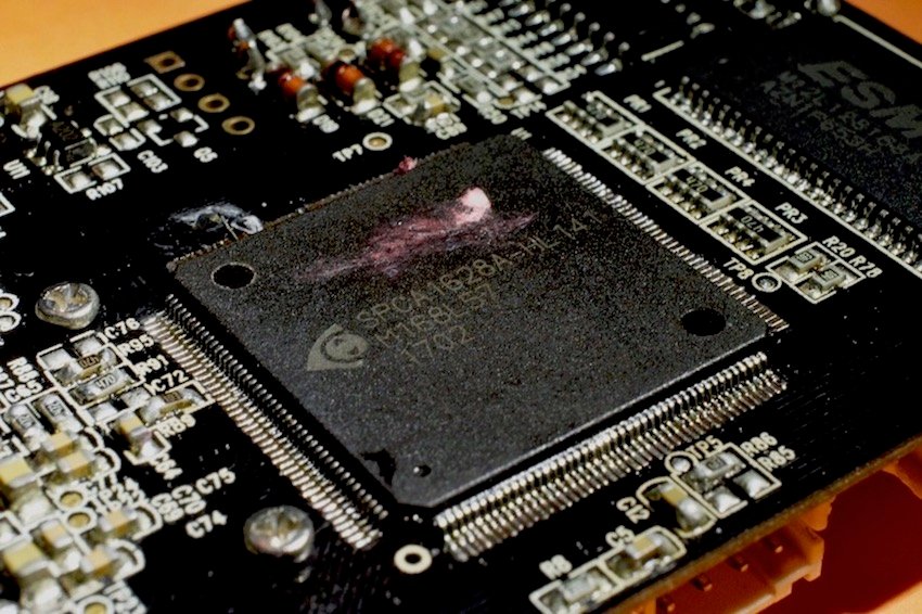 Controlling all of the functions of this trail cam is a Sunplus system-on-a-chip, or SoC. Not a lot can be found about this particular SoC. It is made by Sunplus and carries the part number SPCA1628. Searching reveals that this IC is commonly used in dash cameras. (Check out our dash cam teardown!). There is an external RAM, ESMT M12L128168A, paired to the SoC.
