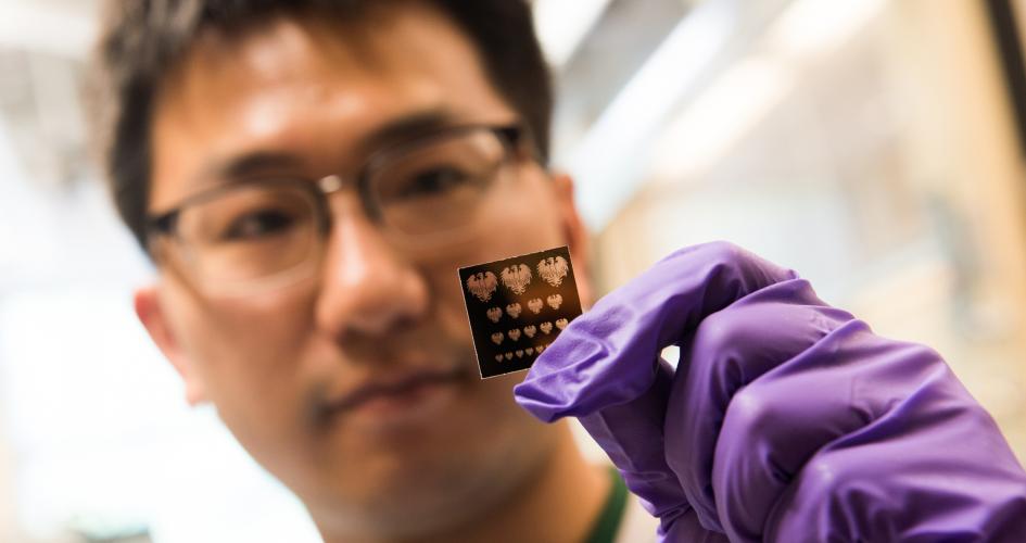 Yuanyuan Wang, the paper's lead researcher, with an example mask. Image courtesy of the University of Chicago