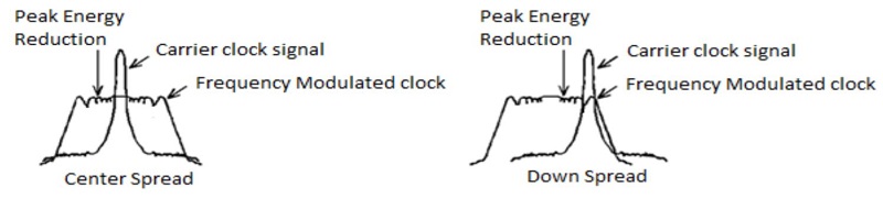 In a previous article I discussed spread-spectrum modulation as an effective and fairly straightforward method of reducing radiated emissions. Well, at least it’s straightforward when you have an IC to take care of the details, and that’s exactly what the NB3H73113G does. Furthermore, it has two options: “center spread” and “down spread”: