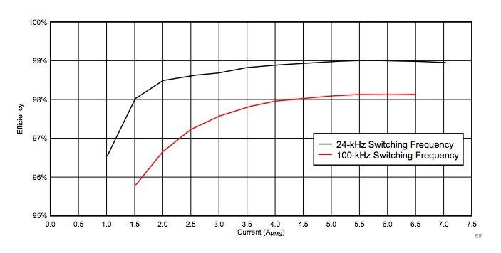Converter efficiency, given PWM rate. Image courtesy of Texas Instruments