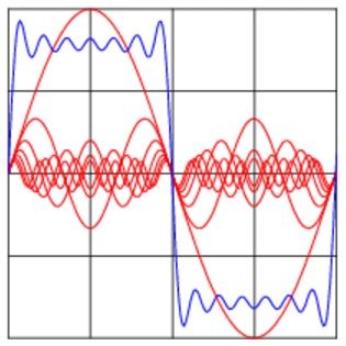 Frequency components (red) in a square wave (blue).