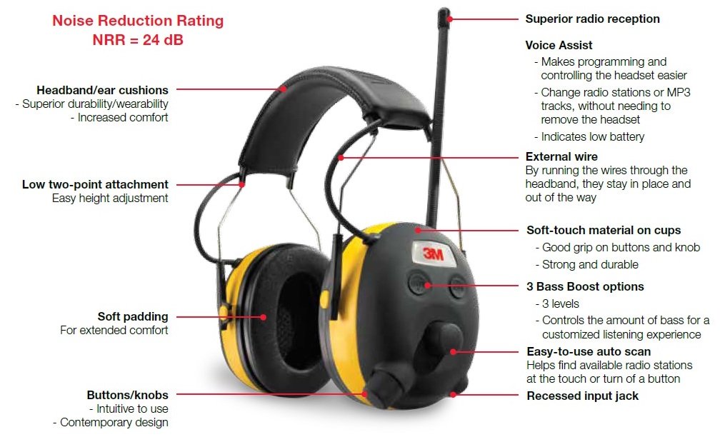 Summary of 3M's WorkTunes Hearing Protector. Image courtesy of 3M.