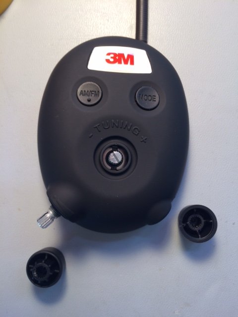 This hearing protection from 3M, with a built-in radio and MP3-compatible, looks to be a well-built design with simplicity in mind. I'm a big fan of the conformal coating on both PCBs, but this may be the norm for similar radio-enabled hearing protection devices. The two knobs and three buttons (the radio tuning knob serves as a push button as well) work easily and smoothly. The potting (epoxy) appears to serve its purpose well—I believe the potted part(s) and/or PCB would be damaged, if not destroyed, if the removal of the potting was attempted.