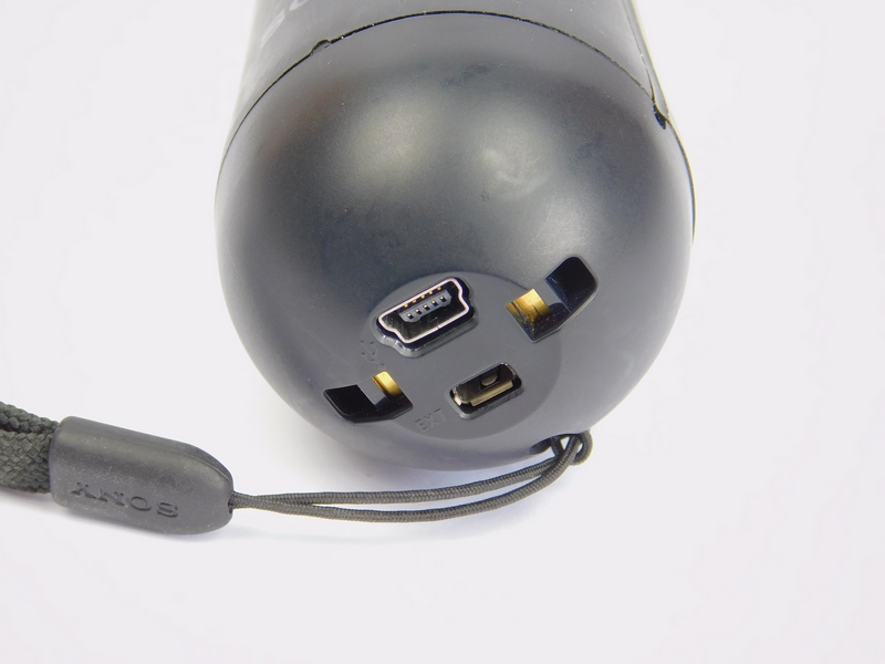 The unit is made using plastic and held together with four screws. The top of the unit has a rubber-like sphere that is easily compressible. The bottom has various IO ports. The unit, itself, is shaped in such a way that makes it easy to hold. Because these units are designed to be moved and swung around, it's fairly sturdy.