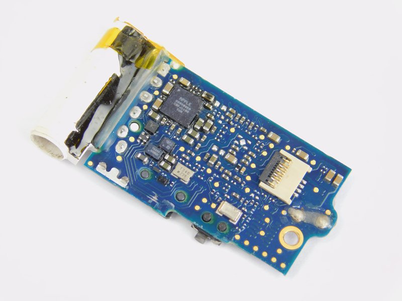 Apple has gone out of its way to make the device as difficult as possible to reverse engineer. Both the major ICs have ident numbers that do not correspond to a device that can readily be purchased from major vendors. However, with a bit of digging and some electronics knowledge, we can determine what parts do what.