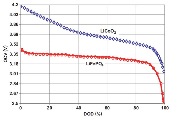 Discharge characteristics for two types of lithium batteries. Courtesy of Texas Instruments via Digi-Key.
