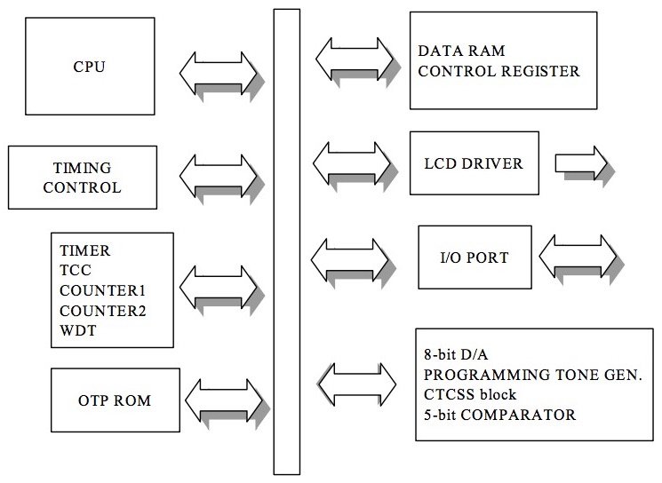 EM78P568 block diagram. Image courtesy of Elan Microelectronics Corp.