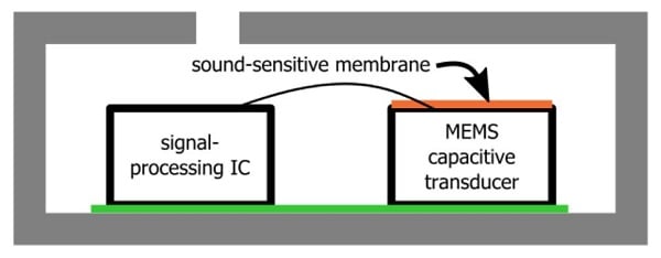 But the capacitive element in a MEMS microphone is fabricated using (you guessed it) MEMS technology; in other words, the transducer is a microscopic component that fits right in with the microscopic semiconductor-based components in an integrated circuit. This innovation leads to microphone modules that are smaller and more user-friendly.