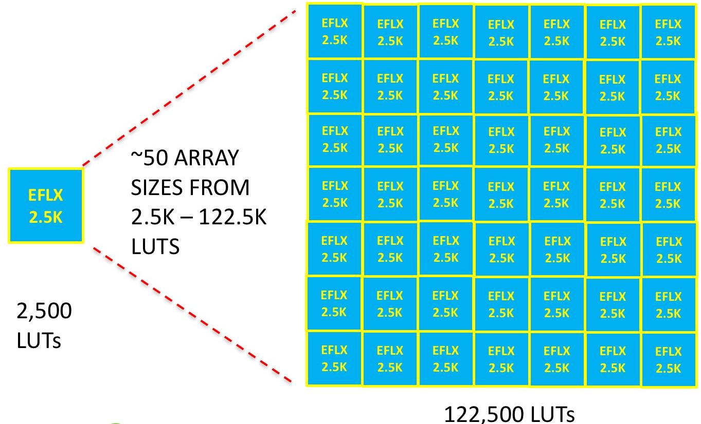 EFLX-2.5K takes over at 2500 LUTs and arrays up to 122.5K LUTs.