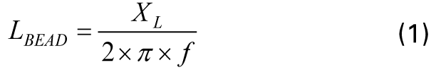 For the region on the measured ZRX plot where the bead appears most inductive (Z ≈ XL; LBEAD), the bead inductance is calculated by the following equation:
