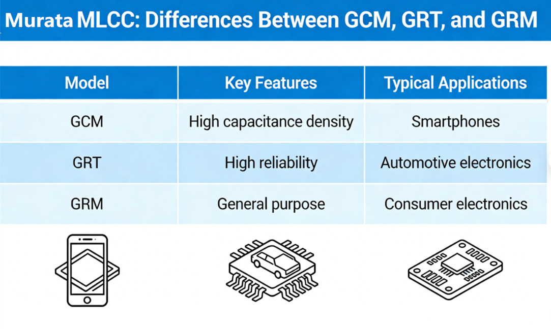 Differences Between Murata's Common GCM, GRT and GRM Series MLCCs