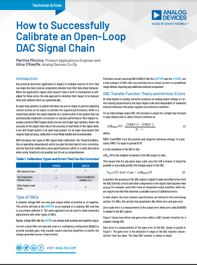 The monitoring and testing of a DAC signal chain are critical considerations for open-loop applications. Errors in a DAC signal chain, including DAC intrinsic errors that vary depending on the system, can significantly disrupt the customer design-in experience.