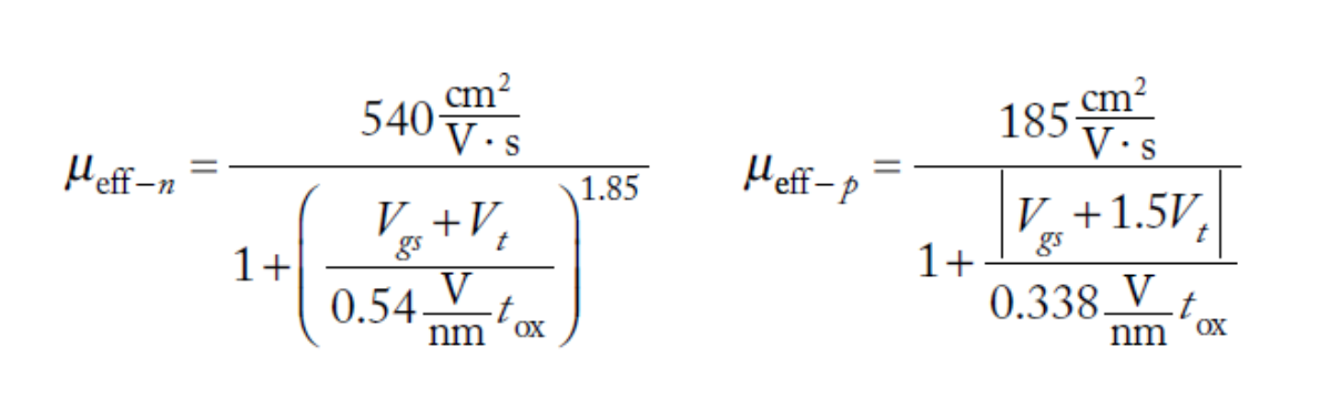 The carrier is also having physical limitation hence it can only maintain a certain maximum average speed, this is called velocity saturation. A universal model that matches this scenario is given in (Chen, et al., 1997) and (Chen, Hu, Fang, Lin, & Wollesen, 1997), where the mobility (µ) was replaced by the effective mobility (µeff).