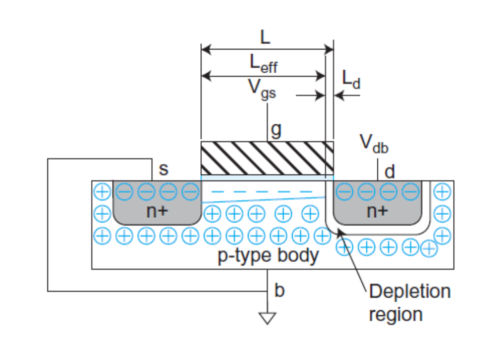 Figure 2. Depletion region shortening effective channel length
