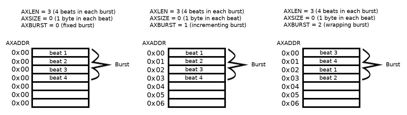 Figure 5 shows a simplified view of the three different types of AXI bursts.