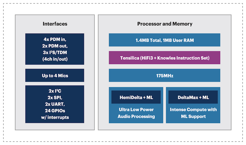 The block diagram of the AISonicTM family of audio edge processor. Image from Knowles