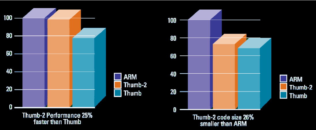 Thumb-2 offers measurable improvements over both Arm and Thumb. Taken from this presentation.