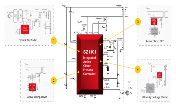 The SZ1101 Addresses Active Clamp Flyback with Integration