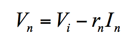 However, we now have Vn ≠ Vp because of the voltage drop across rn. In fact, Ohm’s law gives Vp – Vn = rnIn, or, if we recall that Vp = Vi,