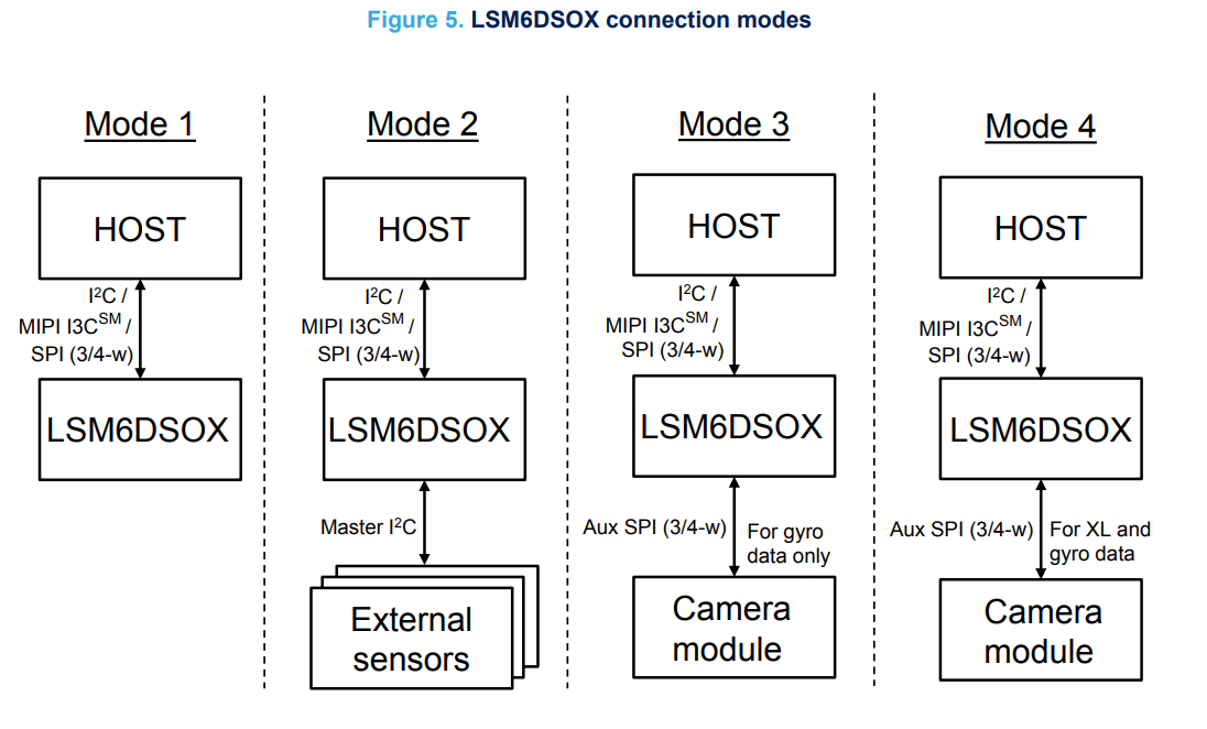 The LSM6DSOX is an always-on 3D accelerometer and 3D gyroscope. The sensor can be accessed via SPI and I2C, as well as the industry's latest standard, I3C. The sensor is compliant with Android for integration with Android systems (such as tablets and phones).