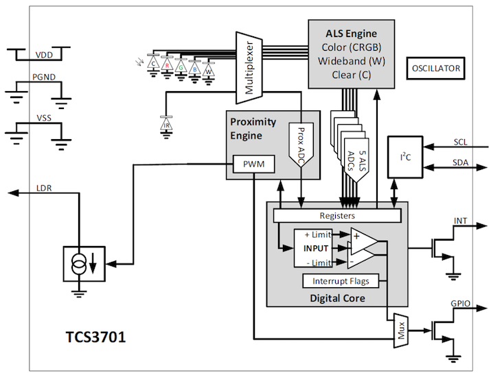 According to a press release from ams, "Despite the constraint of operating behind an emissive OLED display screen, the TCS3701 senses the addition of the ambient light passing through the display to light emitted by the display’s pixels located just above the sensor." The company credits a non-predictive asynchronous algorithm with the device's ability to perform ambient light, regardless of screen display brightness and across a range of dim-to-bright environment light levels.