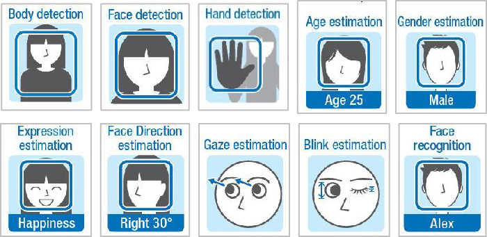 It can, for example, detect and recognize faces, estimate age, gender, expression, and determine what users are looking at.
