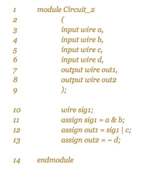 As another example, let’s write the Verilog code for the circuit (which we'll label Circuit_2) shown in Figure 3.