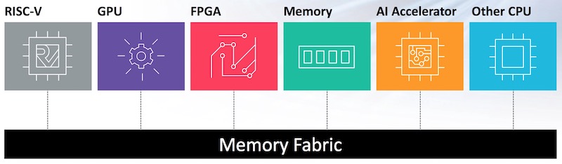 "Basically, we're proposing this memory fabric which would allow, say, a RISC-V processor, a GPU, and an FPGA to all share and have access to the cache in a coherent manner. This doesn't have to be just a RISC-V implementation. You could have other processor architectures that could adopt this standard. The shift here," Marena says, "is that, in today's architectures, the ratio of memory-to-processor or memory-to-peripherals is fairly fixed and set. What we're looking to do is make data more the center of the architecture. Nobody owns the memory and therefore we think that this can introduce some really unique solutions."