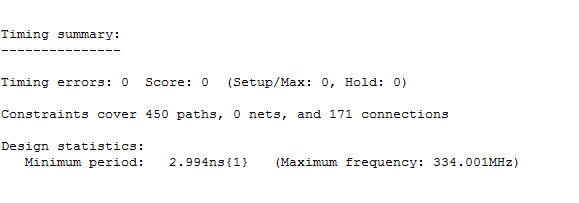 As you can see, there are no timing errors and the maximum frequency of the design is about 334 MHz.