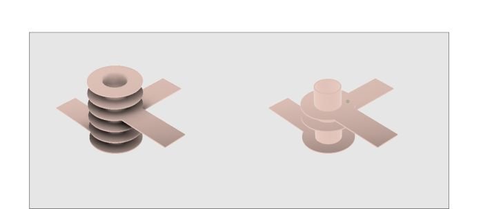 A through-hole via for a 6-layer stack, with non-functional pads present (left) and removed (right)