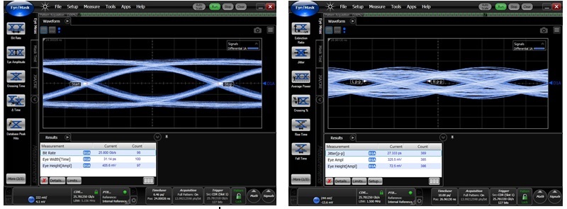 These eye diagrams indicate the potential improvement produced by a back-drilled via stub (left) compared to a via with the stub left in place (right). Image courtesy ti.com