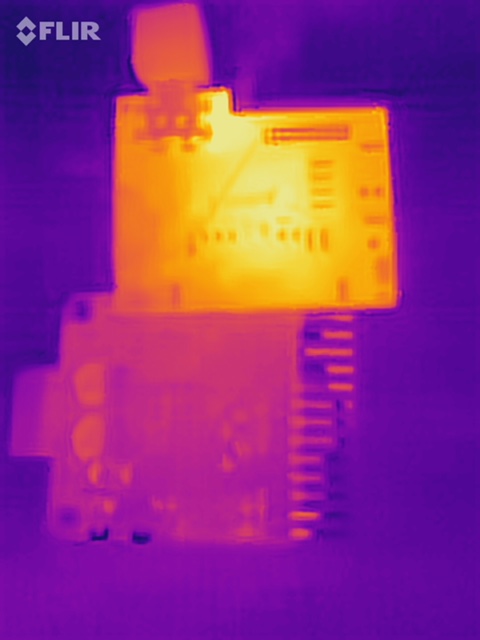 This FLIR camera image of two PCBs from a previous AAC project show the thermal differences between two connected PCBs.