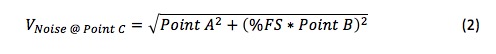 In Equation 2, Point B scales according to the percent utilization of the FSR. In general, you can use Equation 2 to determine the total noise at any point on the plot in Figure 2, including Points A and B.