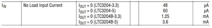 Taken from the LTC3204 datasheet. The part numbers with the “B” suffix are, rather confusingly, the non-burst-mode versions.